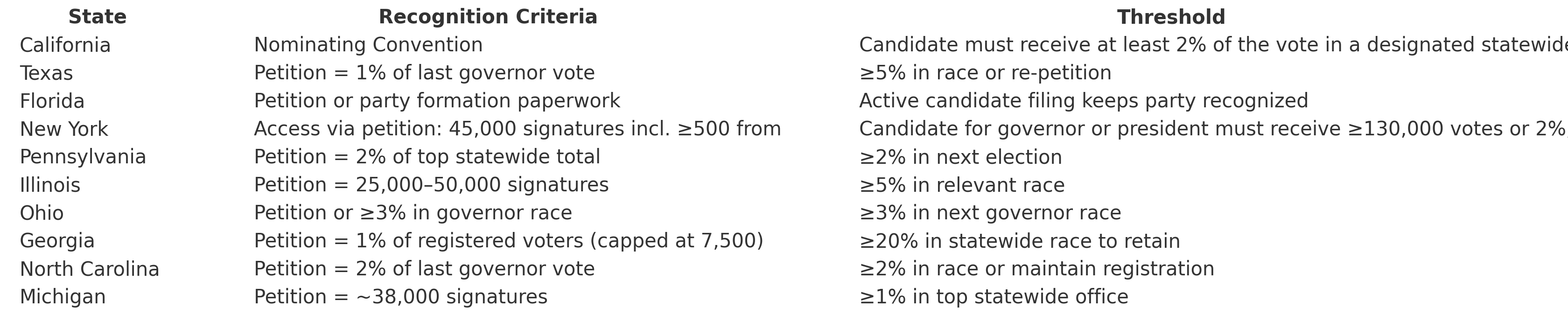 All states are variations on this theme of high bar entry. They all make it difficult to grow a new party. If they do not come out swinging and keep swinging, they die quickly. With no pathways for new parties to grow in smaller-than-statewide increments, without fusion tickets and ranked choice voting to demonstrate statewide support, every state force voters to Sophie’s Choice their ballot on a small party, or not. In total, the ballot line game is rigged.